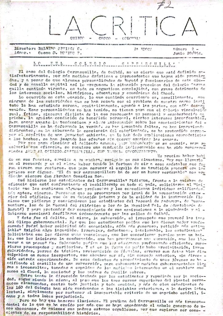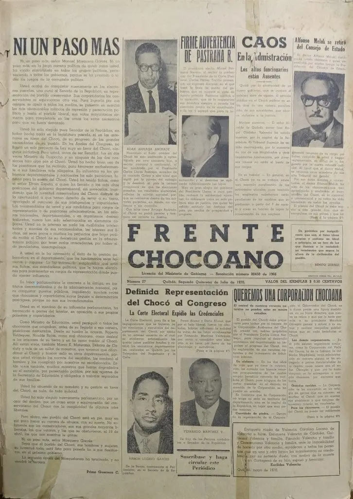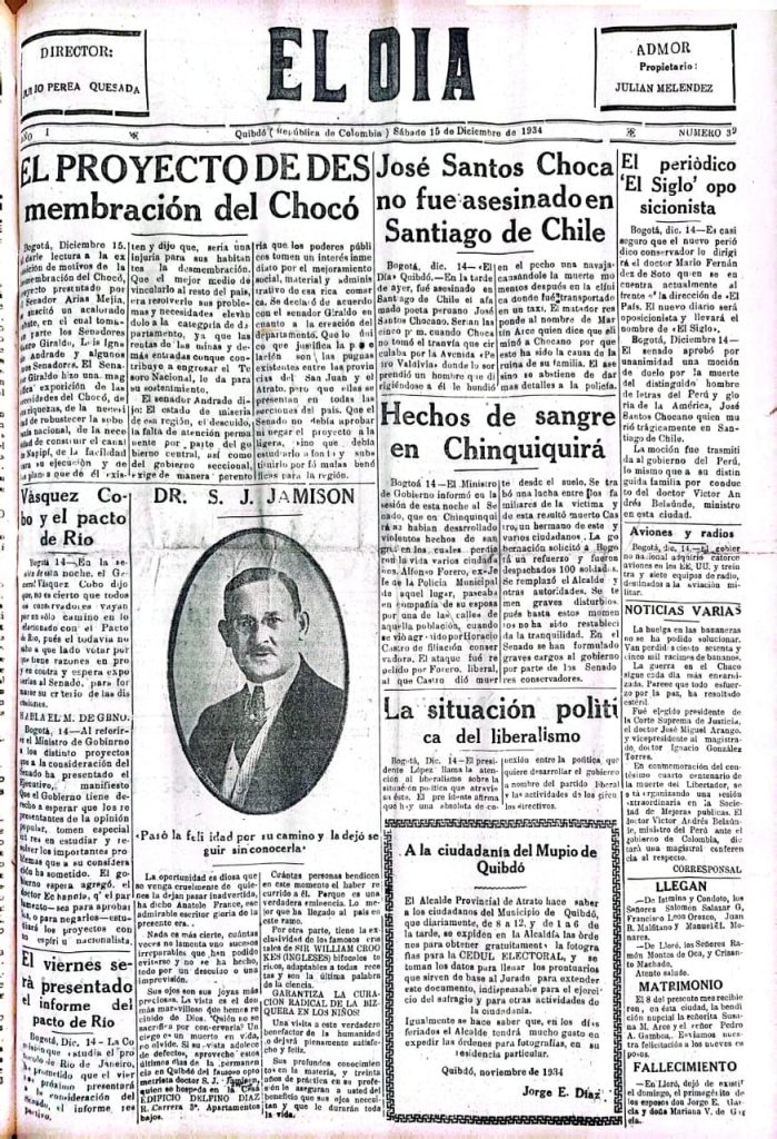 Quibdó-Chocó, Tipografía Colombia, semanal A comienzos de la década del 30 se estableció en Quibdó un tipógrafo natural de Barranquilla