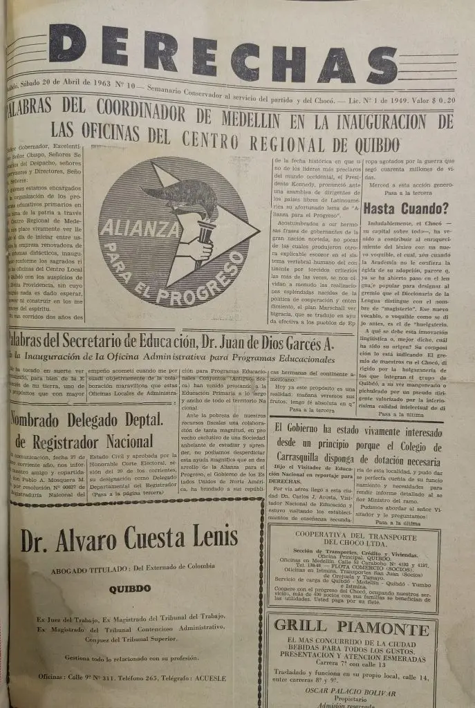 1948-1950 Semanario Conservador al servicio del partido y del Chocó Como su título lo indica, este periódico conservador fue fundado