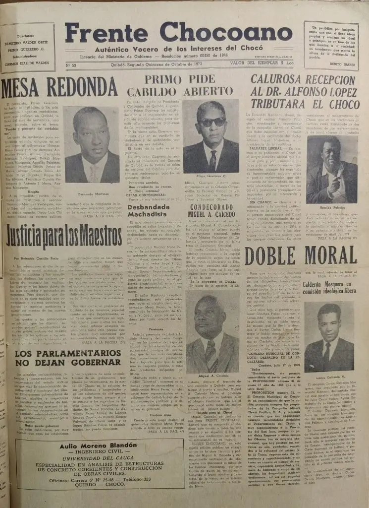 Tomado de : Rastros y Rostros del Periodismo Chocoano, Efraín Gaitán Orjuela,2004